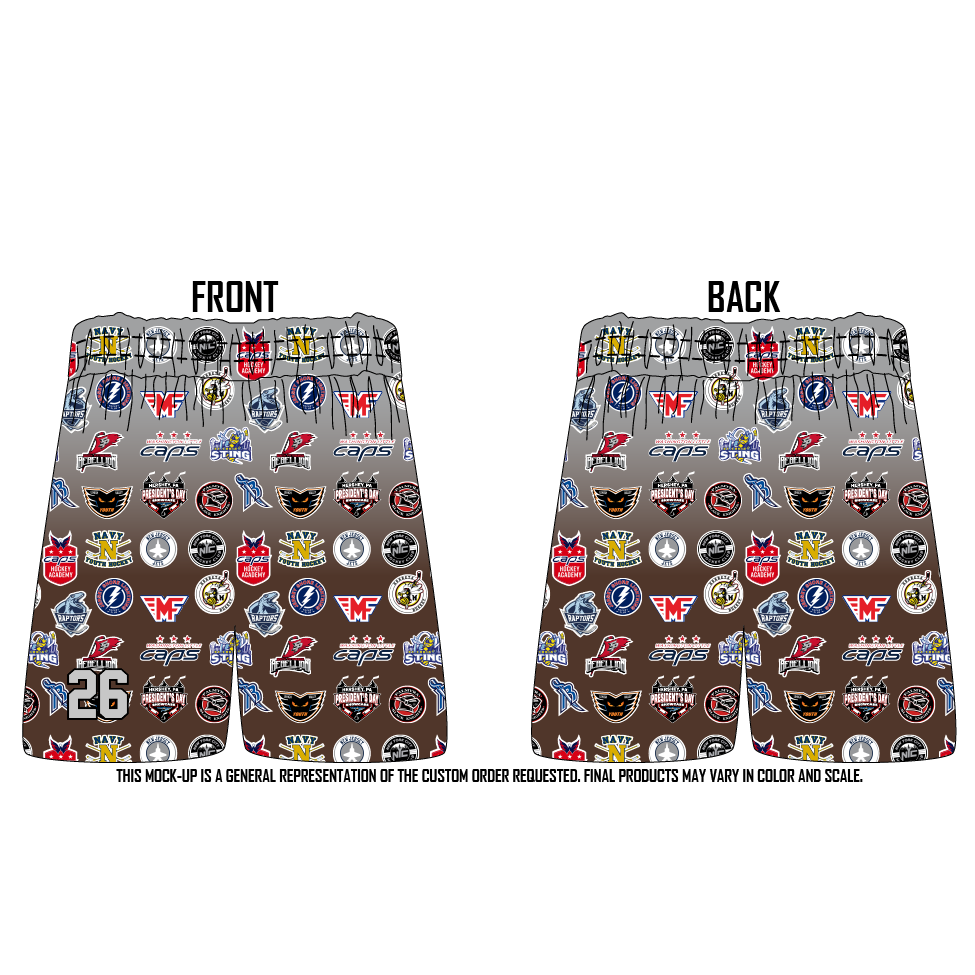 Custom Fully Sublimated Performance Shorts. Option to add number.