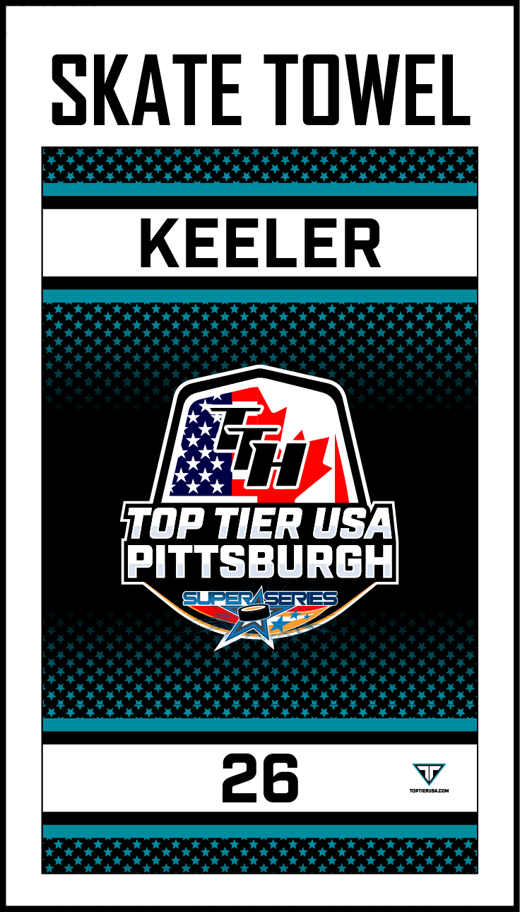 Fully Sublimated Skate Towel. Approximately 15" X 25". Name and Number included.